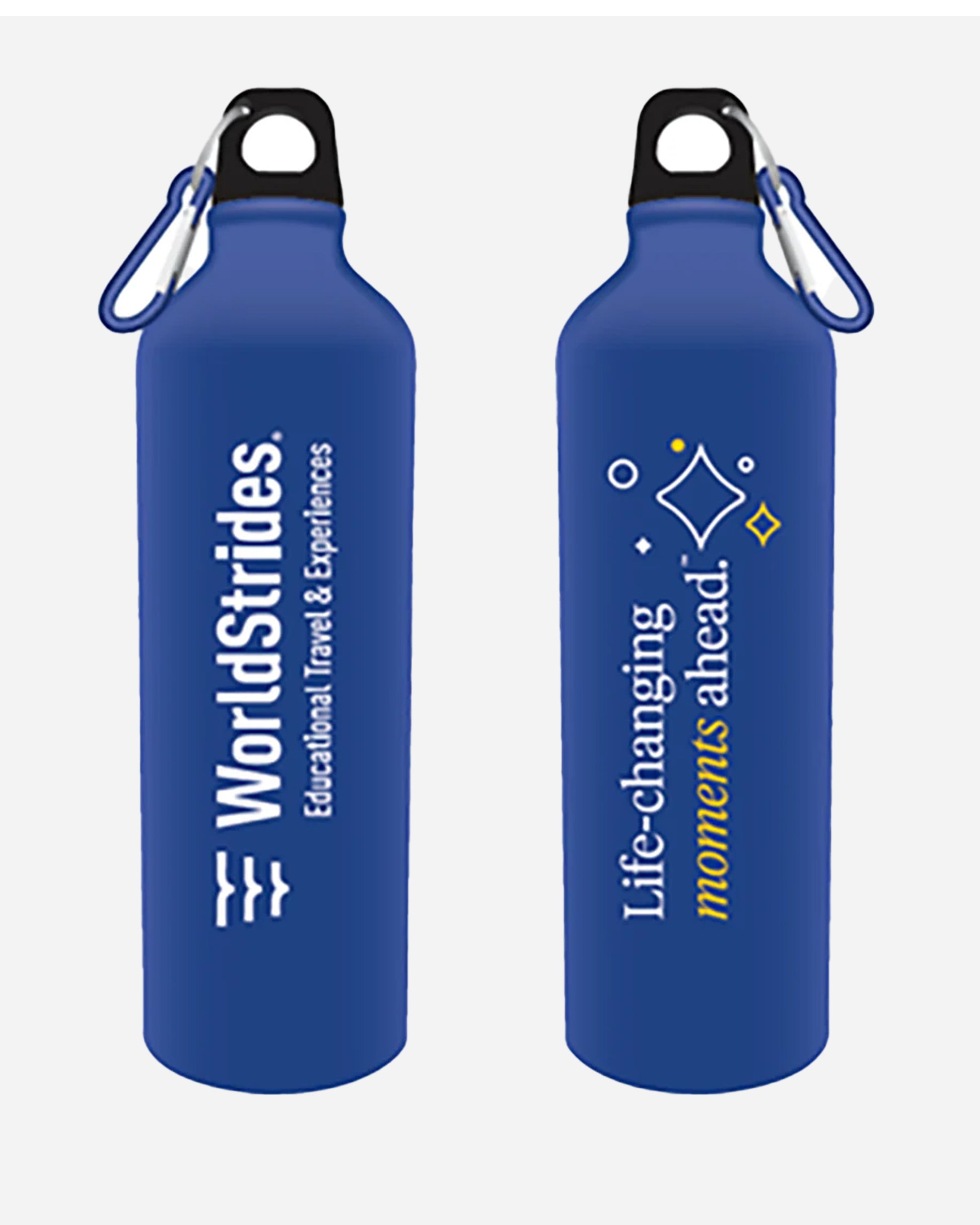 Stay hydrated on the go! Our FDA certified aluminum bottle features single-wall aluminum construction and screw-on rubber sealed cap with carabiner clip.